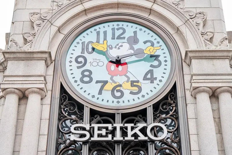 位於銀座四丁目的觀光地標「銀座SEIKO時鐘塔」,原名為「和光百貨本館」,自2021年進行部分改裝後,便於2022年改名為現在的「SEIKO HOUSE GINZA」,只要搭乘東京Metro地下鐵至「銀座站」的A9出口,徒步約2分鐘就能抵達。SEIKO HOUSE GINZA的時鐘每小時都會敲鐘報時,到了1932年換上現在的第二代時鐘後,至今已歷時91年;為了慶祝迪士尼成立100週年,SEIKO HOUSE GINZA特別換上了米奇造型的鐘面,這也是時鐘塔首次採用卡通人物的圖案。![]()