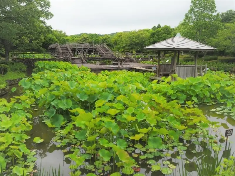 位於米子市淀江町的「伯耆古代之丘公園」內,以6月下旬~9月開放的「古代荷花園」為首,擁有復原過的15米高床式建築 「彌生村」、木製戶外運動齊備的「冒險廣場」、復原古墳時代中期的「帆立貝式古墳」, 周圍還有104尊陶俑的「帆立貝式古墳」等設施。這裡是面積廣達10公頃的廣闊公園,可以一邊慢慢地遊覽各種各樣的景點,一邊想像古代人們的生活。