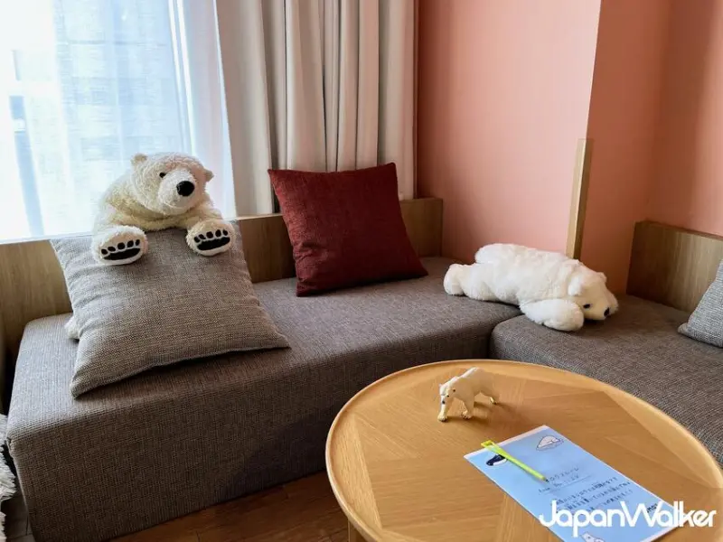 來到北極熊主題房,甚至連門牌設計、房間鑰匙、手機架、牙刷架、浴室防滑踏墊等,都是滿滿的北極熊元素,房內還備有以北極熊為主角的漫畫,帶給下榻旅客滿滿的療癒白熊,不妨來數一數房內到底有多少隻北極熊吧!除此之外,還有「企鵝主題房」與「棕熊主題房」可供挑選,不管是哪一種可愛動物,進到房內保證都是驚喜連連。