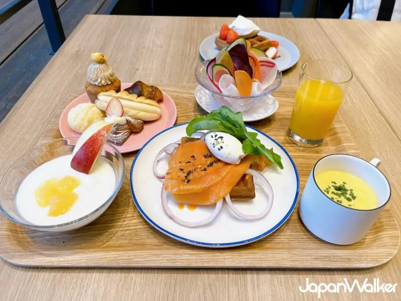 此外,早餐種類相當多樣化,從西式到和式應有盡有,麵包、貝果、玉米濃湯、旭川當地特有的醃漬小菜全都能在這裡找到,就連生乳包、閃電泡芙等甜點都一應俱全,讓你絕對不會想特別到外面用餐。