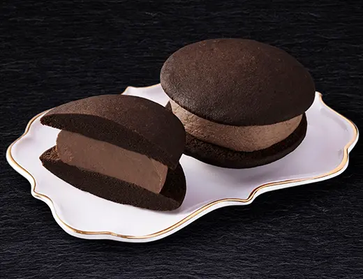 這款「巧克力雙餡銅鑼燒」的外皮Q彈且略有嚼勁,中間夾了巧克力甘納許和巧克力鮮奶油兩種質感不同的內餡,而且甘納許又使用了兩種巧克力製作而成,讓巧克力控可以盡情享受滿滿的巧克力風味。![]()