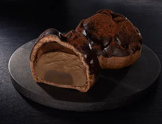 這款極濃巧克力泡芙的巧克力內餡,主打使用了比利時巧克力、濃厚的微苦巧克力奶油與鮮奶油所混合製成,並於泡芙外皮撒上可可粉,用料相當不手軟,每一口咬下都能吃到十分濃郁的巧克力內餡,讓人立刻就會有飽足感。![]()