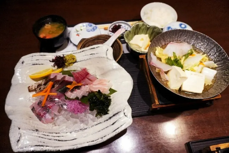 「旬門」是可以享受境港新鮮海鮮的超人氣居酒屋, 餐廳的設計理念,來自於古民家店內的圍爐和倉庫。午餐時段可以在此享受生魚片、煮魚、天婦羅等家常料理;到了晚上則搖身一變成為居酒屋,供應各種鳥取在地料理,例如大山雞、時令魚和白蔥等名産,也有各種各樣的山陰銘酒,讓日本酒控能夠一飽口福。