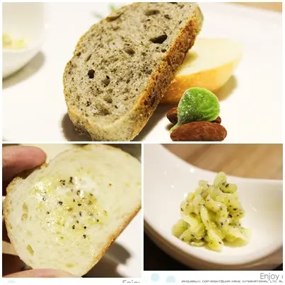 嚐試塗抹檸檬黑胡椒奶油在鄉村麵包上頭,吃起來有點蒜味但細細品嚐後又有點酸味與胡椒的香氣,十分的特別