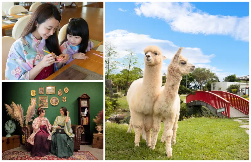 來到這一定要換穿經典浴衣、參加專人傳授的和菓子及抹茶體驗,以及參與慶典及DIY活動,感受濃厚的日本氛圍,日式園區還設有萌寵體驗區,能觀賞萌寵們的療癒日常,還能近距離體驗牧草餵食的樂趣,豐富的行程讓您的旅程精彩不間斷!