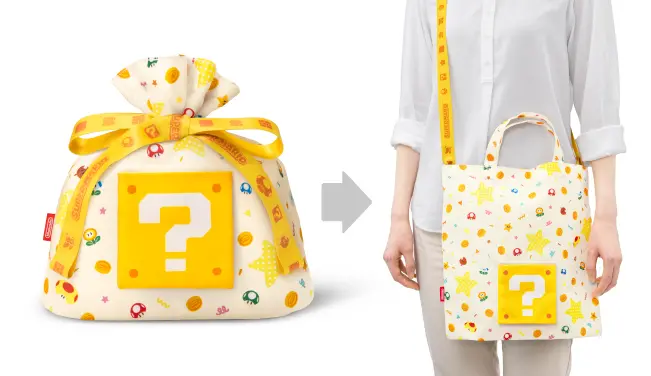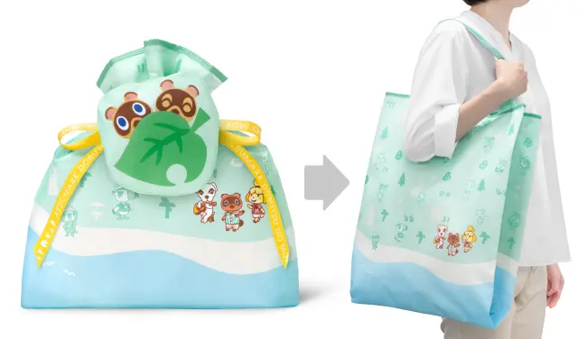 多用途包裝環保袋共分為兩種尺寸,2023年一口氣推出3款大型尺寸環保袋,款式分別是《集合吧!動物森友會》、《斯普拉遁3》、《皮克敏4》,每一款的圖案既繽紛又生動,而且還會根據主題附有一個小型收納袋,做為聖誕禮物的包裝來送給另一半或好朋友,既不失禮又臉上有光。