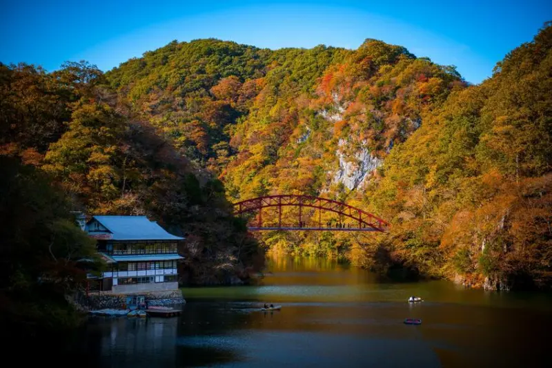 造訪帝釋峽,除了散步漫遊,不可錯過搭乘遊覽船,40分鐘的船程即可周遊一圈神龍湖,讓人彷彿進入詩畫中,欣賞楓紅佈滿山谷,看湖光山色間的倒映,沉浸在如人間仙境般的景緻。另外,還有提供獨木舟及電動滑板車的租借,用不同的移動方式,感受帝釋峽的秋日美景。