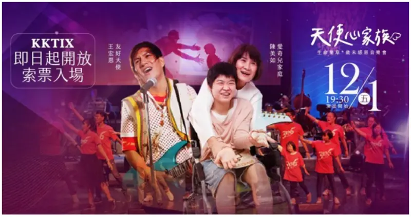 天使心家族誠摯邀請所有喜愛音樂、樂於付出愛的民眾們,12月1日週五晚上七點半一起到夏凱納靈糧堂,感受生命之美分享恆久的記憶與感動!此次活動首度開放免費索票入場,邀請大家搜尋「天使心家族」官網進行活動報名,名額有限敬請把握,一起用愛與希望支持身心障礙家庭!