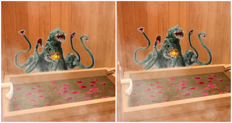 而位於「哥吉拉迎擊作戰~國立哥吉拉淡路島研究中心」一旁的高級海景飯店GRAND CHARIOT 北斗七星135°」,為了搭上《哥吉拉》上映70週年慶熱潮,特別打造了全新的「哥吉拉怪獸主題房」,踏入房門後放眼望去整間房間就有大大小小的哥吉拉圍繞著房客,與粉絲們度過一段難忘的時光,像是牆壁上的掛畫、床罩、靠墊、浴室牆面等,都充滿了哥吉拉的身影,而且還可以從房間窗戶看到哥吉拉迎擊作戰園區的巨型哥吉拉雕像,可說是相當刺激又震撼!入夜之後則會因為房內特殊的光照變化,彷彿來到電影當中的世界,沉浸在哥吉拉驚奇恐怖的攻擊當中。