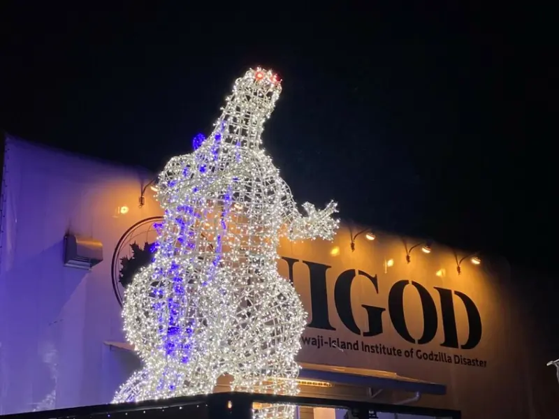 除此之外,每年登場都大受好評的「哥吉拉大型燈飾」,今年將從11月28日~2024年3月3日重新回歸,預計設置在哥吉拉迎擊作戰園區當中的「哥吉拉博物館」前方,一隻約3公尺高的迷你哥吉拉屆時全身將會掛滿彩燈,在夜晚當中發出紫色的耀眼光芒,今年怪獸迷就來淡路島度過一個刺激與浪漫兼具的聖誕節吧。