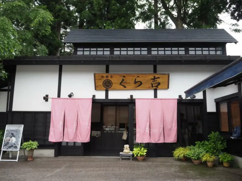 秋田銘菓「諸越」名字的由來,據說是江戶時代將「諸越」進獻給藩主時,曾稱讚它是「超越一切的美味」。「甘味茶房 倉吉」是位於角館武家屋敷通裡的甜點店,招牌商品就是將秋田的傳統菓子「諸越」加入創意,改良成柔軟香甜的小餅「生紅豆諸越」,而店內還有其他種類的和洋菓子,像是使用仙北市產的西明寺栗做成的甜點,也非常受歡迎。
