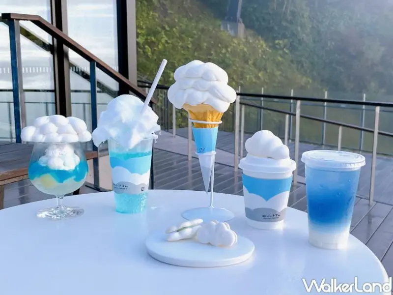 雲海平台還有一間露天輕食咖啡廳「雲 Cafe」,館內的餐點皆是以雲朵為主題,打造出各種與雲朵相關的飲品與甜點,其中最推薦必吃的就是奶香味十足的「雲朵霜淇淋」,其他還有「雲朵聖代、雲朵棉花糖蘇打汽水、雲朵馬卡龍」等人氣品項,都非常值得打卡品嚐。