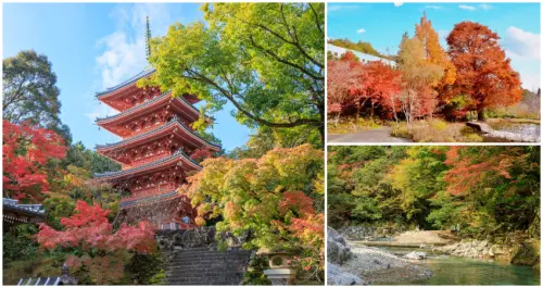 貴為世界遺產之一的「醍醐寺」,創建於西元873年,由於距離京都市中心有一段路程,因此在非賞花時期顯得特別幽靜療癒。不過一到每年的賞櫻、賞楓時節,就會搖身一變成為成千上百遊客都想紛紛造訪的京都賞花名地,特別是秋季的楓紅還會映襯赤紅株紅的本堂,映照在水面上形成如夢似幻的倒影,而今年的11月中起更在國寶的金堂與唐門實行夜間點燈,使得秋季景致更顯幽美。