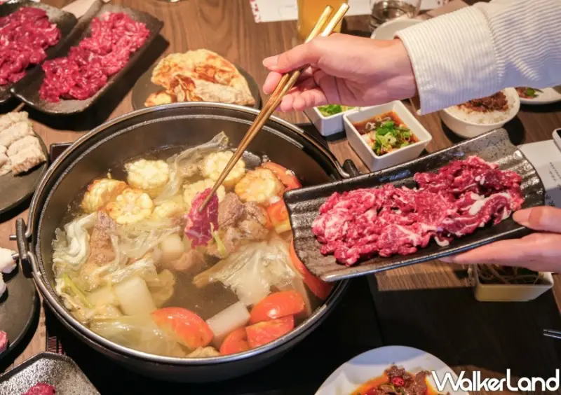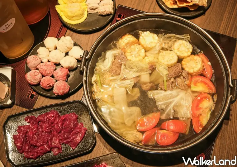 而牛肉火鍋則是和台南安平名店「阿財牛肉湯」合作,完美傳承肉品處理和手工現切溫體牛的工法,將溫體牛的口感和鮮甜味發揮至最佳。湯底部分採用大量牛骨、牛楠和蔬果長時間熬煮,清甜的滋味讓人續好幾碗湯。溫體牛建議簡單涮三秒即可享受到柔嫩Q彈、甘甜滋味。