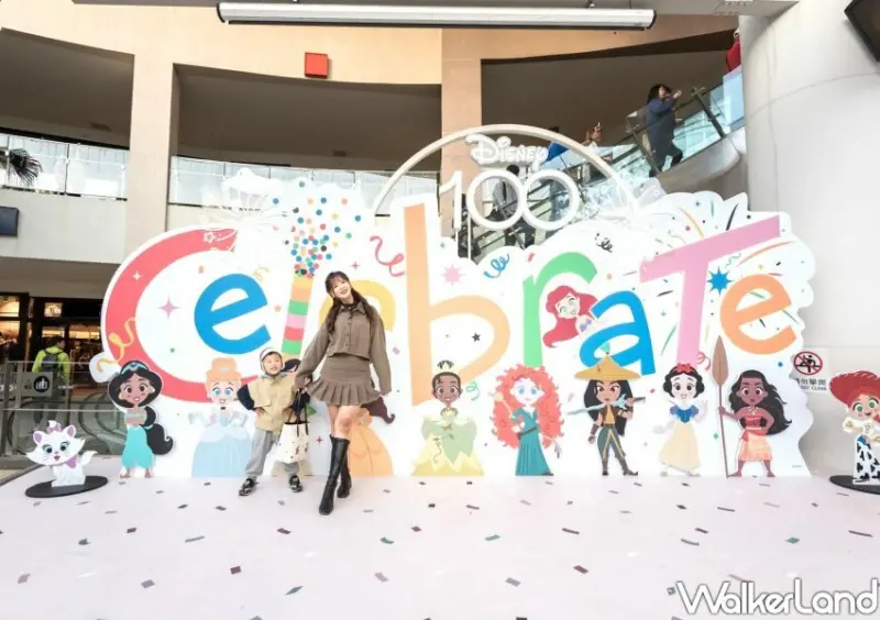 戶外中央廣場上有7個大型打卡點和主題快閃店,包括8米高迪士尼100主題聖誕樹、阿拉丁茉莉公主為主角的「甜點同樂匯」、Q版公主們大合照的「歡樂舞台」、放大版畫具「Q萌塗鴉筆」揪大家幫喜歡的角色化身顏色成為作品一部分。