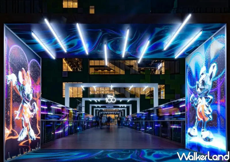 超炫的復古巡道車改造成「宇宙幻想。新時空隧道」、閃耀著霓虹光芒的6米高「迪士尼100主題聖誕樹」、走進愛麗絲夢遊仙境的「宇宙仙境。夢遊樂章」,天幕空橋也化身為星際空橋「開創新宇宙。光影隧道」,有小飛象、布魯托、米奇和米尼等可愛角色投影,讓人串越南北館也能被萌到。