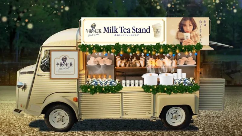 日本KIRIN旗下的熱銷茶飲「午後の紅茶」,一路以來販售多種風味的茶飲,像是奶茶、原味紅茶、檸檬紅茶等,由於使用與現泡茶相似的手法,保留住正統紅茶的濃厚香氣,因此擄獲了不少日本人與台灣人的心。最近「午後の紅茶」又成功在日本網路引起話題,因為從2023年11月25日開始到2024年1月14日期間,將有一台「午後の紅茶 冬季奶茶快閃餐車」依序會在札幌、名古屋、仙台、大阪、東京、福岡共6大城市出沒,並發放免費的熱奶茶。![]()