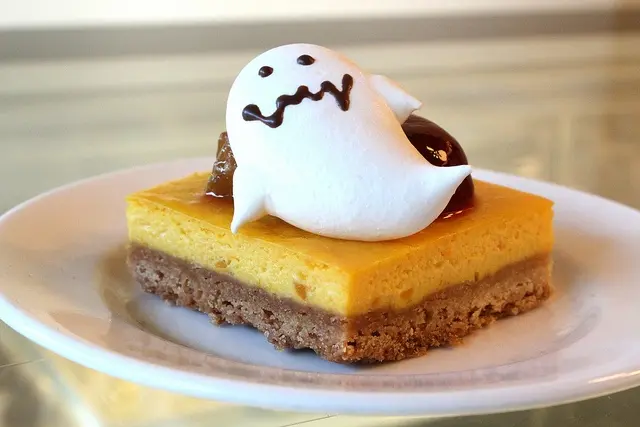 上面佐以蜜地瓜、蔓越莓凍,最後再放上可愛鬼造型的蛋白糖霜。