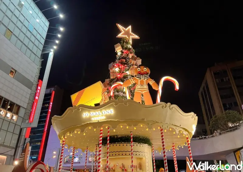 位於台北捷運中山站四號出口的心中山線型公園,為近年來台北人最愛的逛街、漫步新選擇。今年耶誕有Jo Malone打造的超過9米高的巨型香氛聖誕樹,由旋轉木馬、巨型薑餅人和Jo Malone經典禮物盒堆疊而成,於上週點燈後便洗版IG打卡牆。若於明年1/4前在現場打卡並完成指定動作,即可免費兌換香氛驚喜禮物。