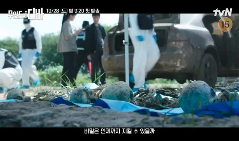鏡頭轉到蓄水池裡,水位正在逐漸下降,水池裡隱藏的秘密即將浮現。這段意有所指的橋段,被網友發現早就埋在戲劇還沒播出的長版先行預告裡,一輛吊車把水池裡下的汽車吊起,下一秒畫面出現4具骨骸,以及警方鑑識團隊忙進忙出的場景,疑似就是鄭基浩一家身份的解答,恐怕真正的姜保傑、姜遇學一家四口早已死亡。至於身份到底如何變換,待編劇慢慢交代。![]()