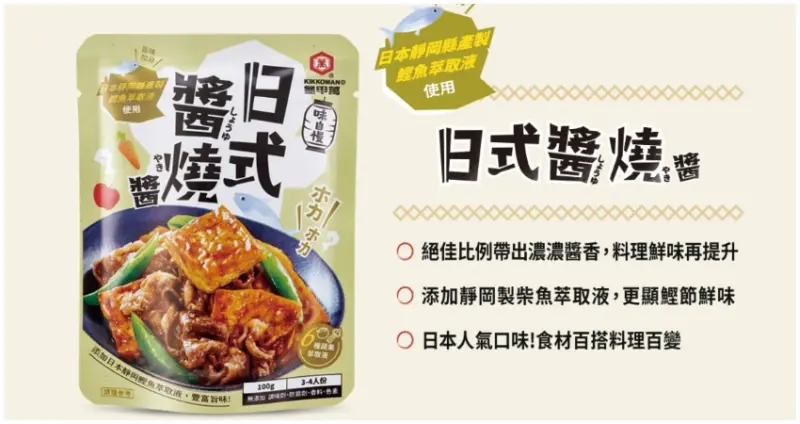 龜甲萬「味自慢」系列調味醬包,現已於全台家樂福、愛買(5款全口味)與全聯(依不同分店口味不同)上市,只要準備食材再加入一包醬包,快速、方便又簡單,不論是料理達人還是初學者,都能輕鬆烹調出美味的日本家庭料理。