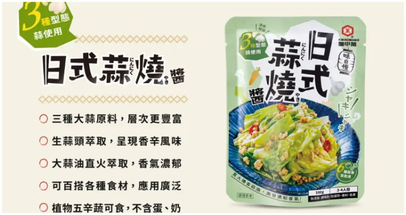 5.日式蒜燒醬: 日本熱銷Top3,藉由三種不同型態的大蒜結合而成,簡單百搭各項食材,如高麗菜,再加上些許絞肉,蔬菜和豬肉搭上鹹甜又層次豐厚的醬汁香氣四溢,蒜燒讓食材美味在嘴裡擴散開來。