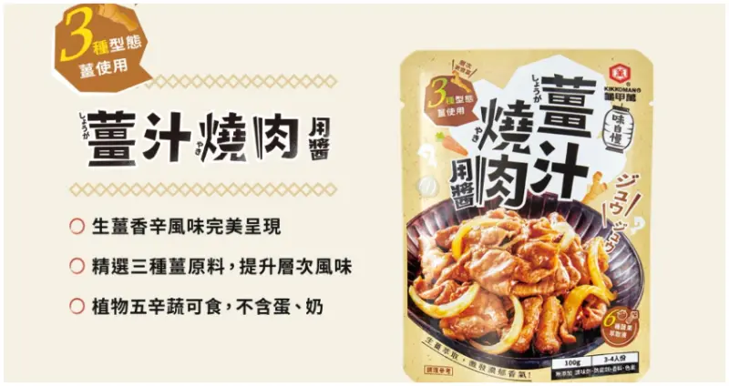 1.薑汁燒肉醬: 日本受歡迎的經典家常菜,將洋蔥與豬肉預先拌炒,再倒入薑汁燒肉用醬,讓醬汁緩緩滲入已炒過的食材中,透過醬汁中三種不同形態的薑原料,讓菜餚中散發出誘人香氣,薑汁與燒肉完美結合,一入口瞬間開啟味蕾,配上白飯,一口接著一口停不下來。![]()