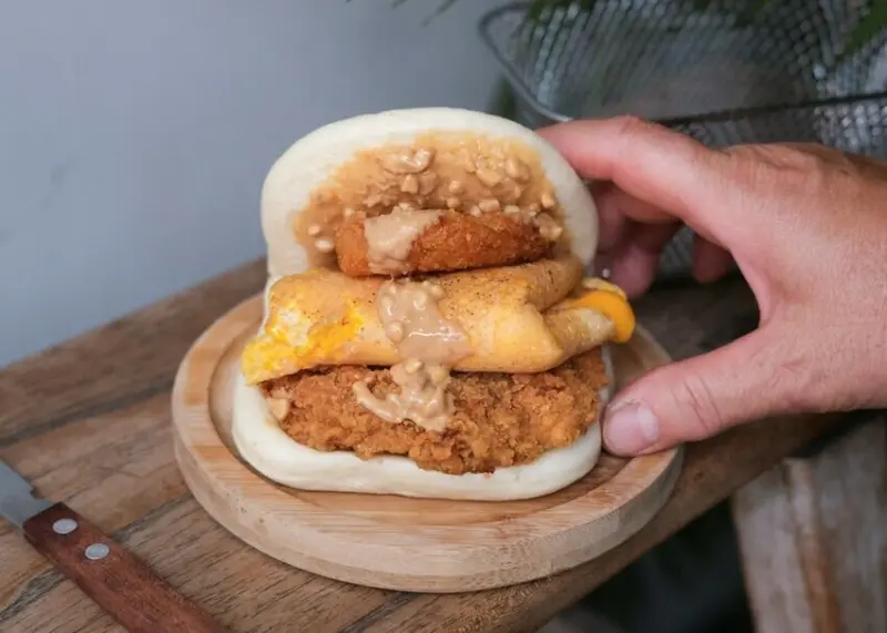厚厚的刈包夾了飽滿內餡,有卡啦雞、薯餅、厚蛋和顆粒花生醬等,刈包皮濕潤度恰好,不會軟爛。入口充滿濃郁的花生香氣,搭配軟嫩多汁的卡拉雞,帶來豐富的口感享受,整顆吃完會十分過癮!<全文介紹>