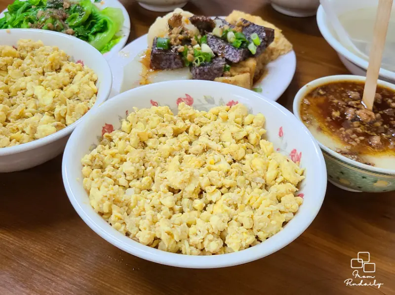 身為雞蛋狂熱者的我最期待的就是蛋飯了,在餐點還沒來時還以為這是大碗的份量沒想到正是小碗的,一層碎碎的炒蛋鋪在白飯上光是視覺上開始就很享受了!這裡的碗粿是帶有米香的米蒸碗粿,碗粿上會淋上醬油、肉醬等搭配成的特製醬料...<全文介紹>