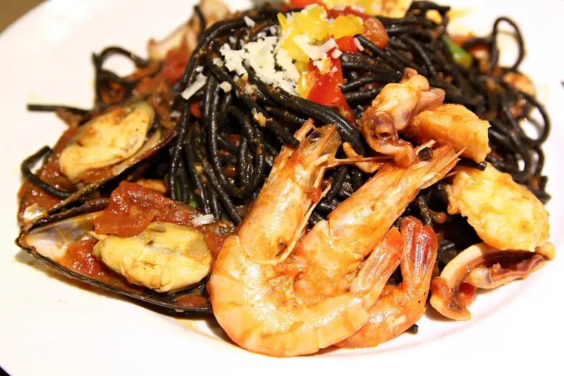 茄汁野菇墨魚麵佐威尼斯海鮮