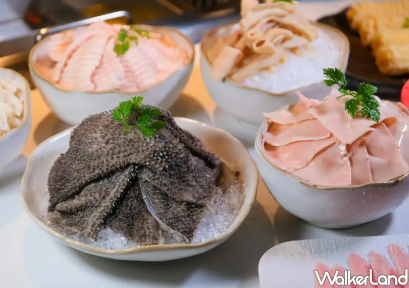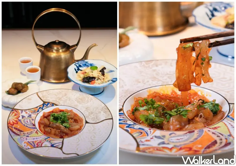 並規劃開胃四重奏款待,一入坐就先提供耗時熬煮水梨和白木耳的「小吊梨湯」、道地「酸辣涼粉」、爽脆「涼拌腐竹」和酸甜開胃「鹿谷茶梅」,提供極致的服務。近百款菜色有美國Prime級牛肉、日本A5和牛和被譽為豚肉界神戶和牛等級的100%純種盤克夏黑豚豬肉等肉品。