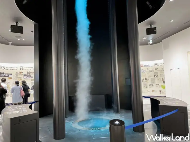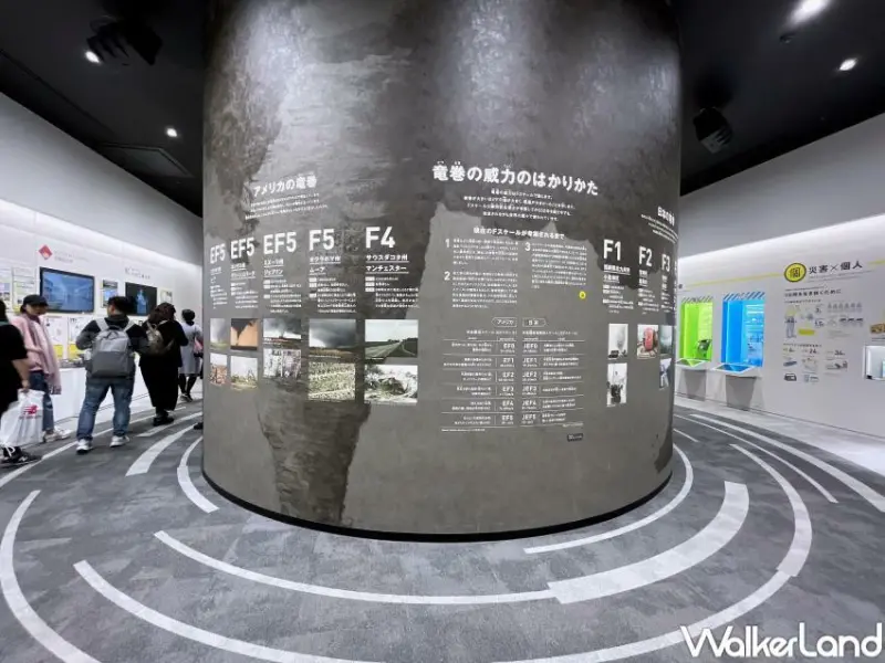 館內最特別的亮點,就是在第1層樓的展區當中,設有日本最大的龍捲風裝置,可以親眼看見龍捲風如何形成,並置身在小型龍捲風當中感受強風的威力,四周的牆面上不只佈滿了與龍捲風相關的科學現象,還有被暱稱為「龍捲風先生」的知名氣象學者「藤田哲也」所發表的許多觀察研究及解說。