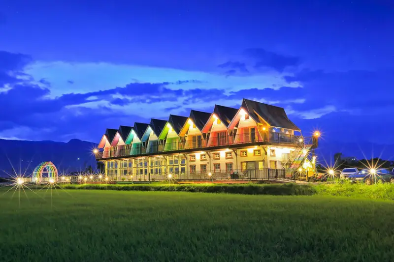 宜蘭稻作為一期,秋冬休耕期間即為一片濕地,也是攝影朋友拍攝倒影的好時機。天色逐漸變暗,民宿也點燈了,更能看出彩虹色調。天黑此時的藍調天空,也是最魔幻的片刻。<全文介紹>