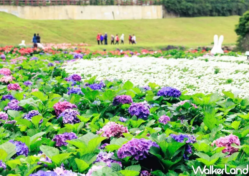 內湖免費繡球花海必拍!如果你以為的內湖只有內科、塞車,那就真的太遜了,隱藏在捷運「大湖公園站」周邊的大溝溪生態治水園區,是內湖人不想說的漫步好去處。隨著四季變換,換上不同花海迎接大家到來,水利處更在近期種植近萬盆繡球花和近5千盆的繽紛草花,以巨型愛心花海形狀打造內湖人最浪漫的後花園。![]()