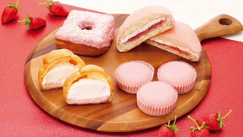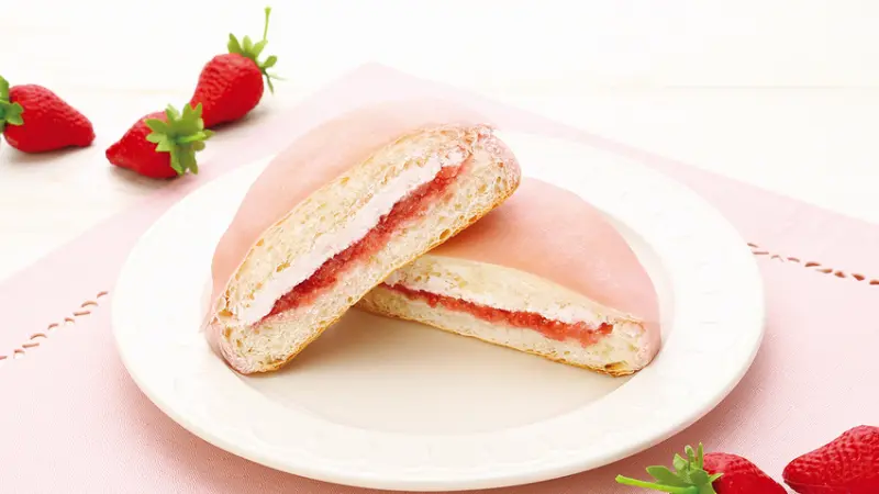 在今年的草莓季當中,首先領軍登場的就是擁有超粉嫩顏色的「草莓鮮奶油麵包」,不僅包入了草莓醬與草莓鮮奶油兩種風味不同的餡料,麵包外皮還特別裹上了一層類似餅乾的粉紅色麵團加以烘烤,因此口感嚐起來是鬆軟中還帶點酥脆;而泡芙控最愛的「草莓雙餡泡芙」,則是一口氣填滿了酸酸甜甜的草莓鮮奶油與原味鮮奶油,讓草莓控每一口都吃到會上癮。