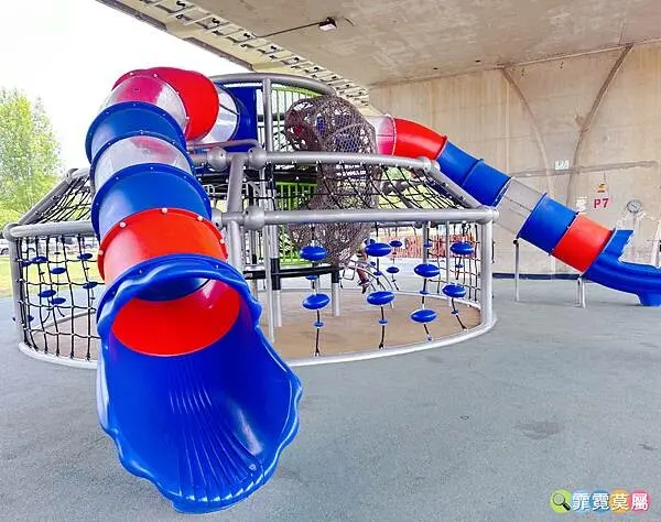 位於垂楊大橋下的番仔溝公園,有橋梁遮蔽不管晴天雨天來玩都超適合。以機器人和飛碟遊具為主題超特別,有攀爬網、攀爬繩網、鑽籠和三座旋轉溜滑梯,考驗孩子們的手眼協調。<全文介紹>