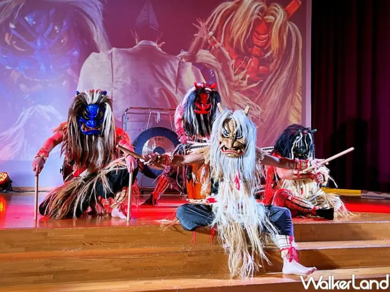 這些裝扮成生剝鬼的太鼓表演者,其實是當地年輕人組成的表演團隊,平時大家都另有工作,但是基於對於男鹿半島的熱愛以及希望將生剝鬼與太鼓文化傳承下去的心意,每一位成員都是另外騰出時間排演訓練,帶給遊客們震撼的演出,全程30分鐘完全沒有冷場,而且票價只需600日圓,堪稱CP值超高、誠意超足的表演。