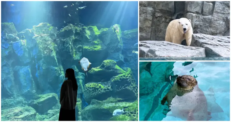 到了2樓的「北極熊廣場」則是館內第一招牌的量點,裡面有一隻自2005年就從俄羅斯搬家到這裡的呆憨北極熊「豪太」,別看豪太有450公斤,據說牠很怕冰冰冷冷的水,有時候在岸邊猶豫著要不要下去游泳的呆萌模樣,讓許多遊客看了都覺得既好笑又療癒。而北極熊一旁的企鵝館則是飼養了成群可愛又有活力的企鵝們,透過窗景可以近距離觀賞到牠們游泳的模樣,很適合親子一同造訪玩樂。