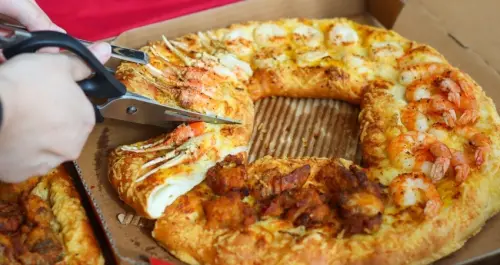 特別的是,本次「起司火山四喜披薩」每款同時吃得到4種口味,並且提供3種組合搭配。包含「超值四喜口味、瑪格莉特四喜口味、海鮮戀人口味」可以選擇,並且製作成少見的16吋超大尺寸,更適合辦公室聚會、好友在家聚餐一起享用。