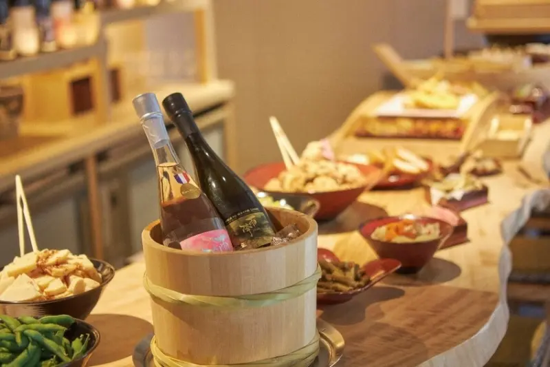 「SAKE Bar Hotel 淺草」主打外國遊客,在辦理check in手續時,當下就會獲贈一個專屬的「枡(日本古早式酒杯)」,這是因為飯店希望房客們使用這個容器,在飯店中嚐遍各種美味的日本酒,最棒的是大多酒款都能無限暢飲(一部分需另付費),如果再搭配幾道下酒菜,就是一場超美好的夜晚小酌時光了。![]()
