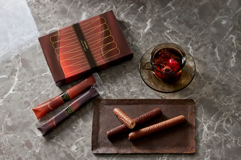 日本當地每年一到情人節前夕就會限時推出的「濃厚巧克力雪茄蛋捲」,今年已宣布開賣日期為1月15日至2月29日,其美味的秘訣在於將超級濃郁的比利時巧克力醬,滿滿淋在原味蛋捲的外層,而且製作蛋捲的奶油特別使用了無鹽奶油,藉此將巧克力的風味發揮得更淋漓盡致,不管配茶或是咖啡,一口一口都讓人幸福到快升天。