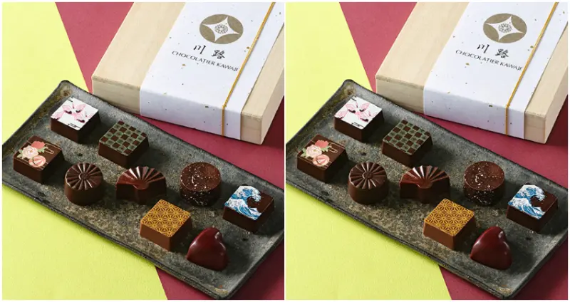 和式巧克力專賣店「Chocolatier 川路」以葛飾北齋的浮世繪及日本傳統圖案為主題,打造精美的和風巧克力禮盒,特別嚴選了焙茶、酒糟等和風感材料,製成獨家滋味。![]()
