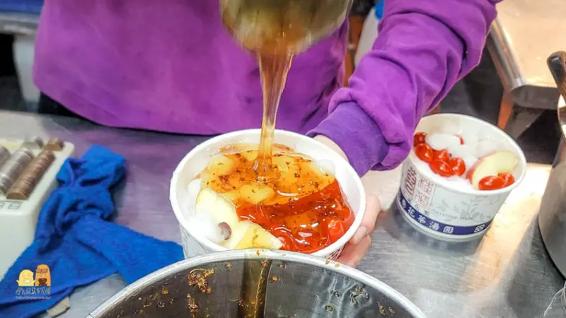 滿滿的桂花釀加在刨冰、湯圓、水果上,清爽香甜的滋味,加上水果湯圓衝突的口感,讓這個甜品在桂花巷內名聲大噪,排隊人潮真的是很驚人!<全文介紹>