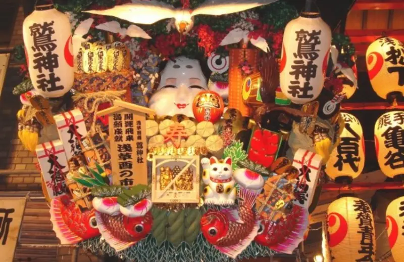 酉之市是日本各地神社在每年11月的酉日舉辦的祭典活動,人們為了祈求開運招福、商業興旺,會購買以竹耙做成的「熊手」,以祈求抓住運氣。酉之市的起源地被認為是淺草的鷲神社,而淺草的酉之市是關東地區三大酉之市之一,每年吸引約70萬人前來參觀,想祈求商業生意興隆一定要來參與。![]()