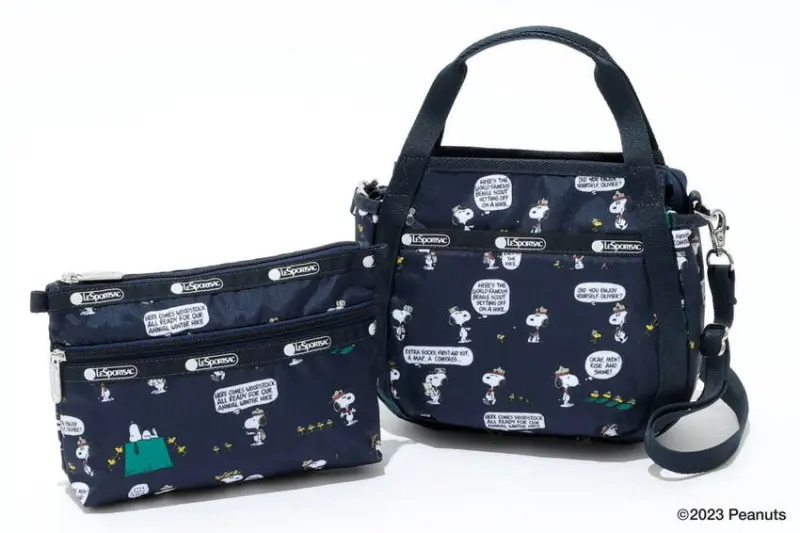 如果你是史努比的超級鐵粉,一定會知道史努比、糊塗塌客和其他小黃鳥同伴組成了一隻超可愛的「小獵犬童軍」,在作品當中牠們經常會一起到處去探險和旅行,LeSportsac也在這次的聯名當中,特別以「小獵犬童軍」設計了一系列7款的海軍藍肩包、化妝包等多種款式,所有包款表面都印有各種有趣的英文台詞,還有小獵犬童軍在冬季一起徒步旅行的可愛畫面。