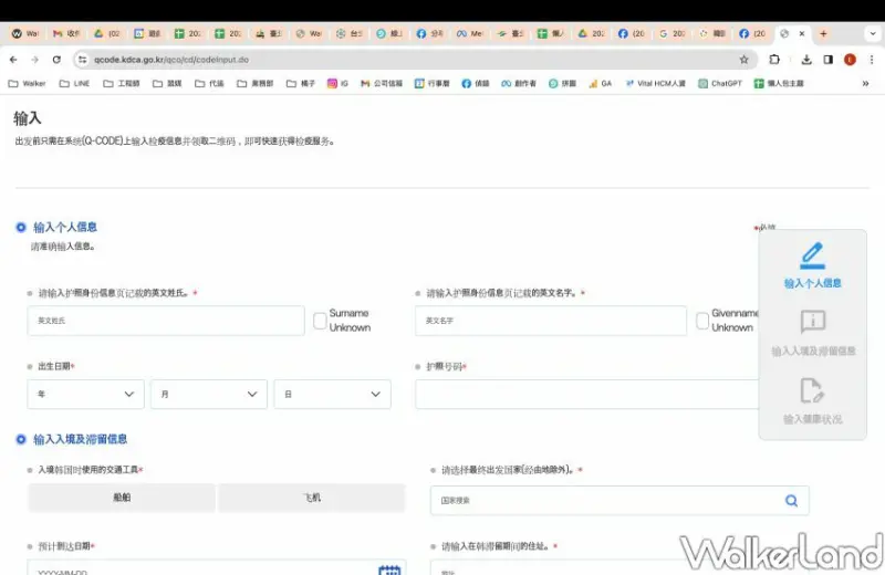 無論是從美國、日本、澳洲、法國、台灣等156個國家入境韓國旅客,不分國籍全部都要填寫「健康狀態調查表」,有提供繁體中文介面,方便台灣旅客輸入,窩客島整理5大步驟,可以先將護照、入住飯店地址先準備好,就可以快速填寫完成,詳細步驟如下: