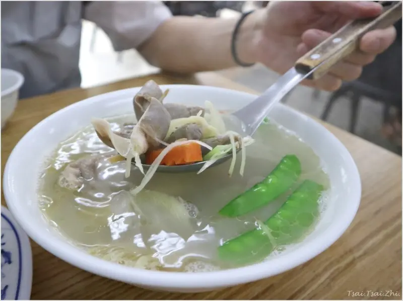 豬肚湯認真說真的好喝,裏頭有放酸菜,湯頭的酸度很讚,還有薑絲提味,豬肚也給的不少,喝起來非常舒服暖胃!<全文介紹>