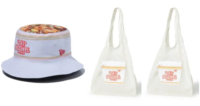 在本次「NEW ERA X 日清」聯名款式當中,最吸睛的莫過於經典漁夫帽「Bucket-01」頂部被印上滿滿的泡麵料,乾燥肉塊、蝦仁、蔥花、碎蛋一樣都不少,側面則是印上了經典王道的「原味醬油泡麵」Logo,戴上之後彷彿正在頭上煮一碗巨型泡麵,令人覺得俏皮又逗趣;另一款簡約純白的垂墜式網狀托特包,設計更是符合時下年輕人的最愛,包包外還特別繡上了一塊日青杯麵造型的布料,上面附有拉鍊設計,適合裝入小化妝品、耳機、行動電源等物品,消息一出早已有不少文青瞄準好這款商品,準備等開賣日立刻購入。