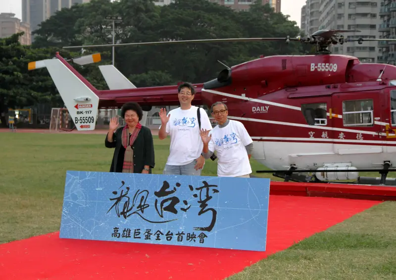 《看見台灣》高雄電影節特映場記者會今日下午登場,呼應全片以空拍紀錄台灣景致,陳菊市長、齊柏林導演與吳念真導演特別於真愛碼頭共乘直升機抵達三民家商,感受從空中俯瞰高雄美景以及高空拍攝工作的辛苦,為電影首映會揭幕。