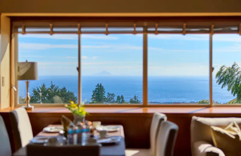 窗戶打開就能看見海景,不只如此,這間獨棟式別墅附近還有伊豆高原的地標之一「大室山」,以及「仙人掌公園」等著名景點,位置優越,交通易達性高。![]()